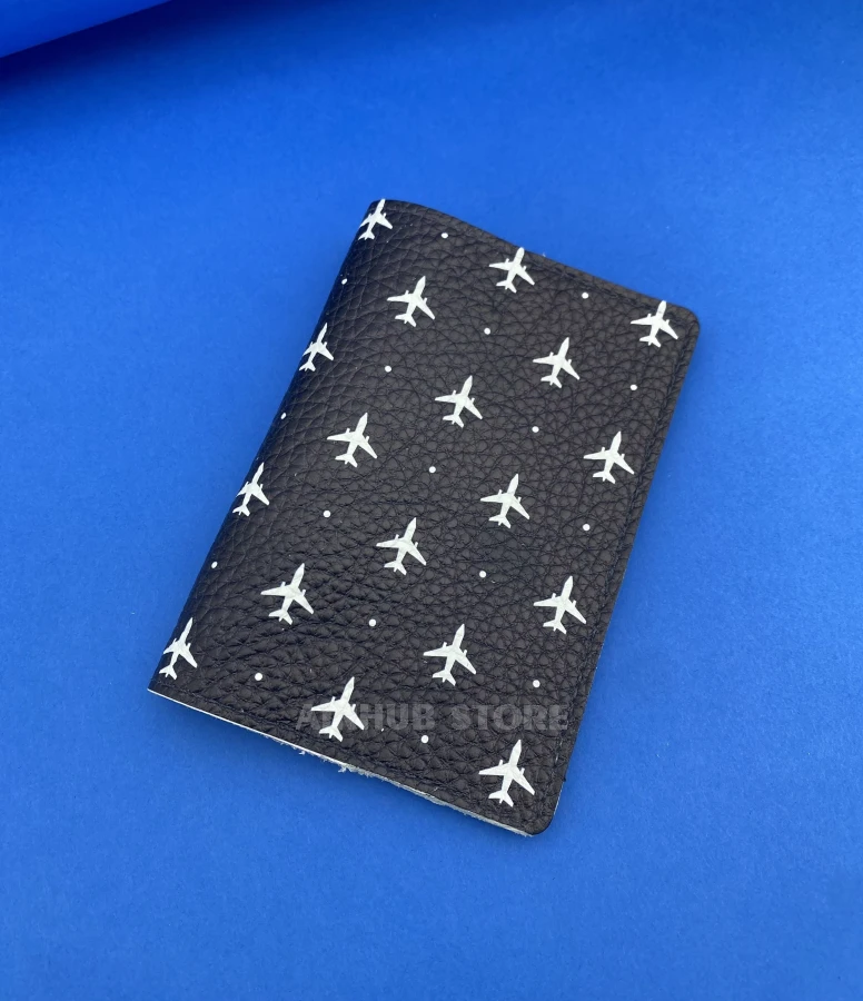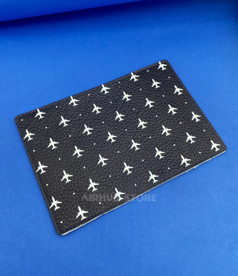 This passport cover is designed for those who cannot imagine life without traveling and flying. Made of pressed leather, it combines durability and elegance, and its main feature is a highly detailed aviation print. Dozens of airplane silhouettes form a stylish print that evokes the boundless sky and the spirit of adventure.