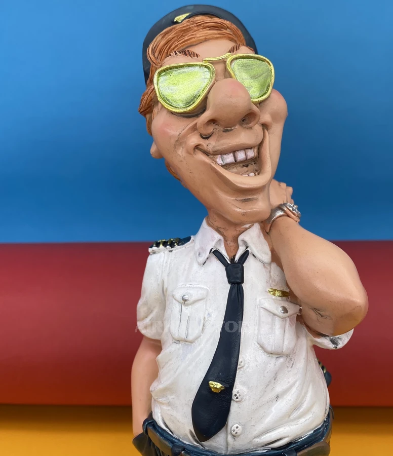 This figurine is a master class in character. The pilot, leaning slightly back, holds his jacket around his neck, and his face shows an expression of “I did it perfectly”. Dressed in a short-sleeved shirt with shoulder straps, navy blue pants, tie and cap, he exudes confidence and calmness.