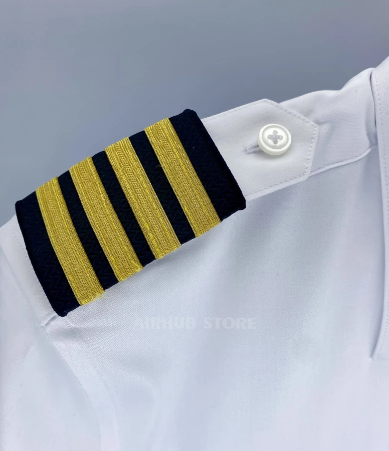 The shoulder straps with 4 stripes symbolize the highest rank in the cockpit - the captain. They are made of dense fabric with gold or silver ribbons, which are highly durable and do not lose their appearance even after active use.