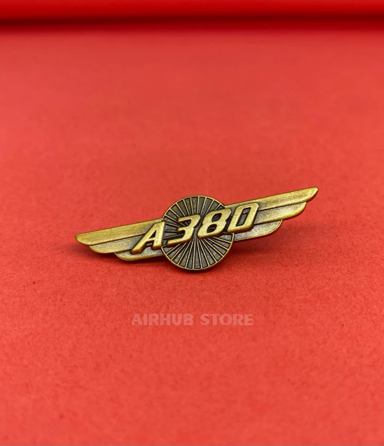 Wings pin with Airbus inscription. Suitable for all fans of Airbus aircraft - A380, A330, A350, A320. This badge will be an incredible find for fans of these aircraft, it will perfectly match your jacket or tie.
