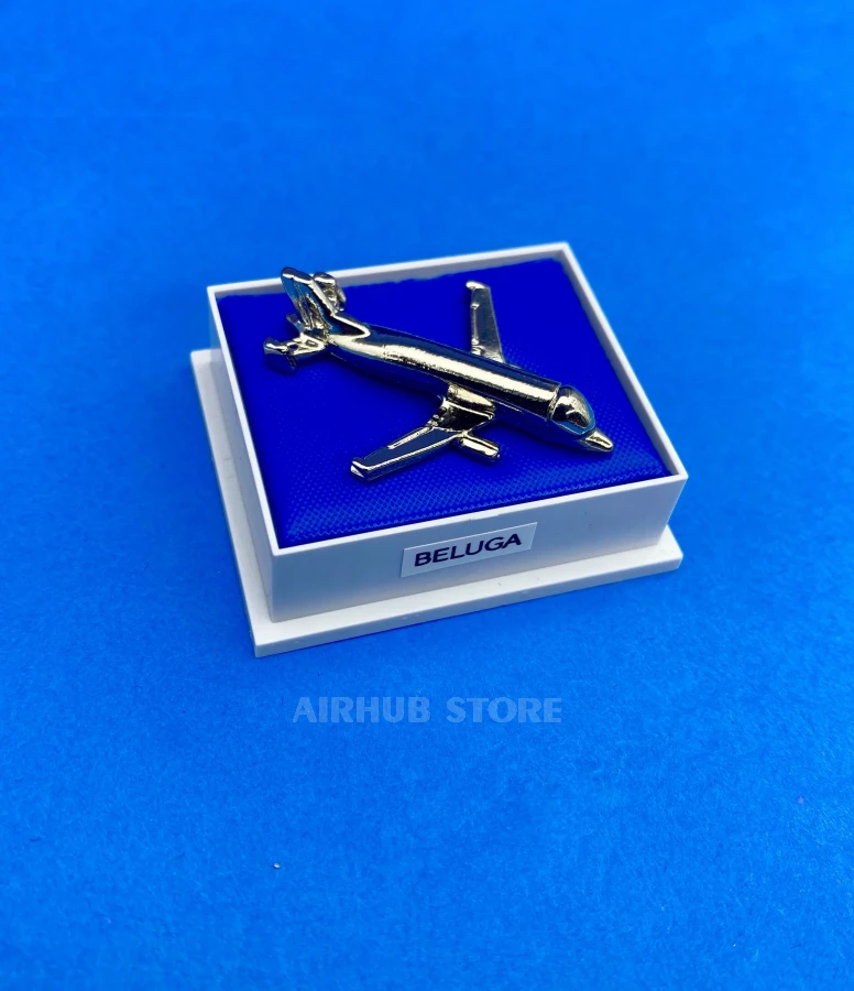 The Beluga pin is designed for those who love aviation and appreciate unique details. Made of durable metal, it accurately reproduces the shape and proportions of the famous transport aircraft that carries Airbus aircraft parts between European factories.