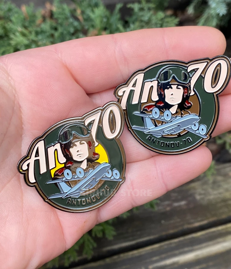 The pin depicts the AN-70, a medium-range military transport airplane developed by Antonov. The aircraft is designed to replace the morally and physically obsolete An-12. This badge with the legendary Antonov 70 airplane is an ideal gift for aviation fans and Antonov fans!