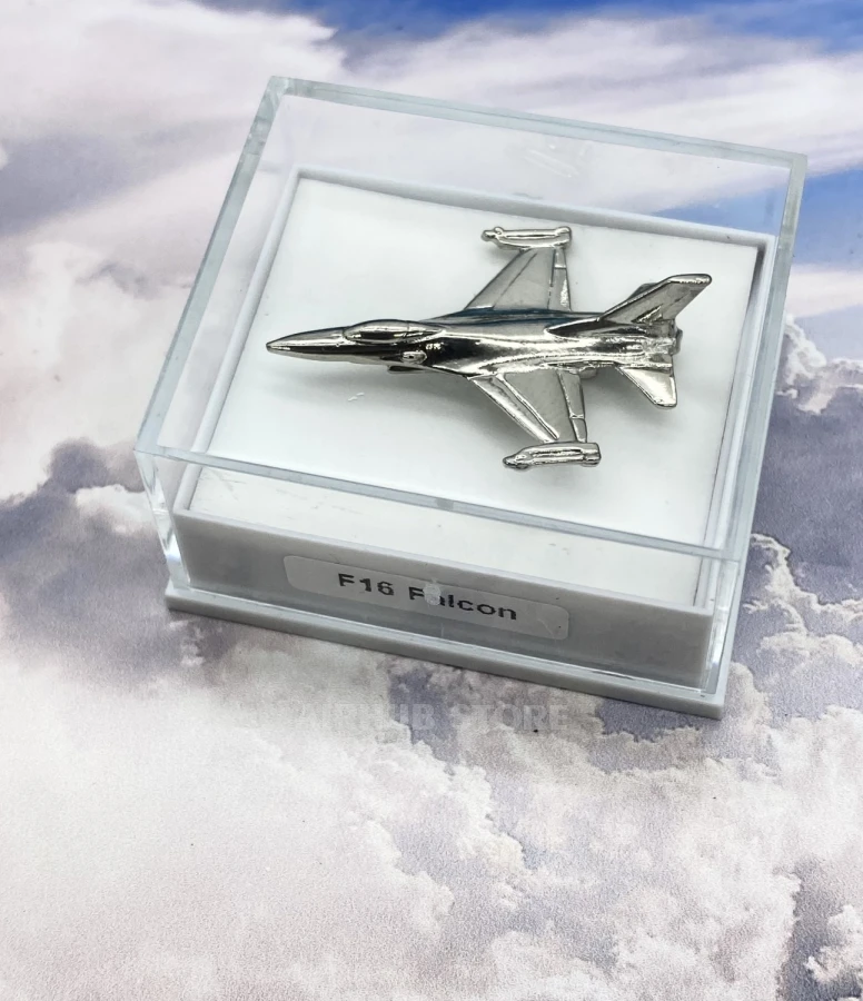We present you the F-16 Fighting Falcon badge in a transparent box. This badge is made of high-quality metal and has a detailed shape. It depicts the legendary F-16 Fighting Falcon fighter jet, which is known for its power and incredible capabilities.