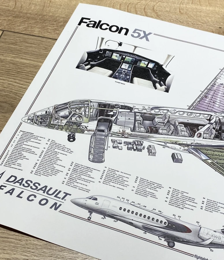 With the Falcon 5X poster, your interior will reflect your passion for aviation and business aircraft. This is a great gift for aviation and design enthusiasts.