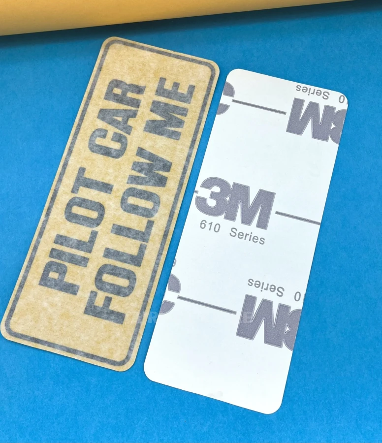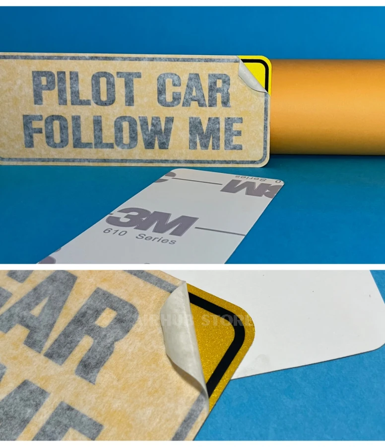 High quality reflective material provides excellent visibility even in the most difficult conditions. Add an aviation character to your belongings, emphasize your uniqueness and provide an additional level of safety with the Pilot car follow me sticker.