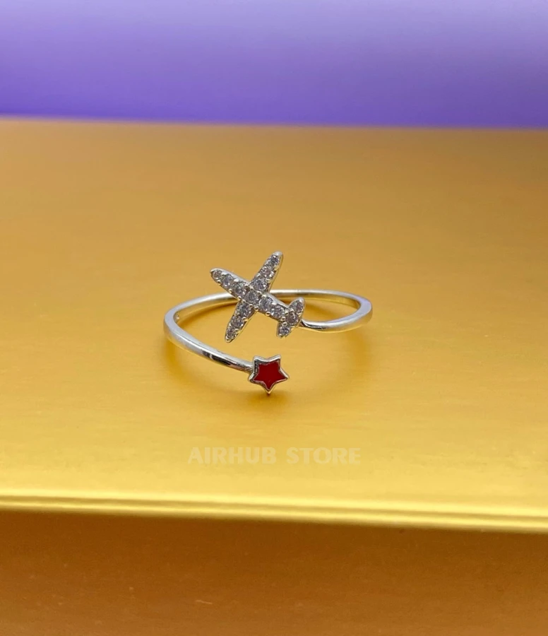 Airplane with a small star Ring (Regulated , Silver 925° , Red)