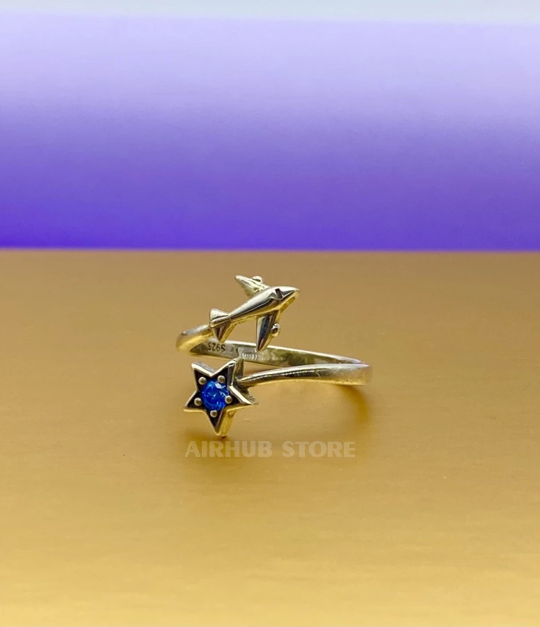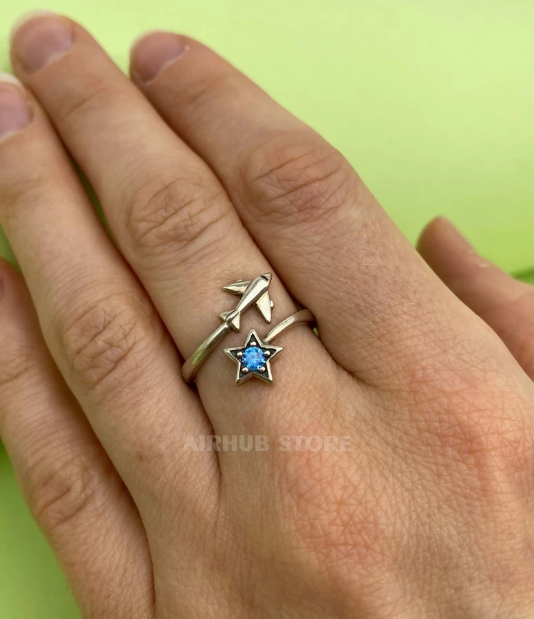This ring is an elegant and unique piece of jewelry that perfectly combines the sleek style of an airplane with a large bright star. Its unique design attracts attention and creates a special charm. A great choice for those who love the sky, aviation and flying.