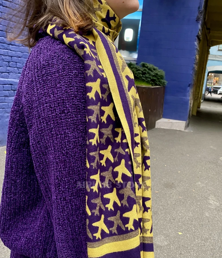 This scarf provides comfort and warmth even in the most severe frosts. Its length makes it easy to experiment with tying methods, and the bright design with an airplane print adds elegance and aviation to your look. Suitable for both men and women.