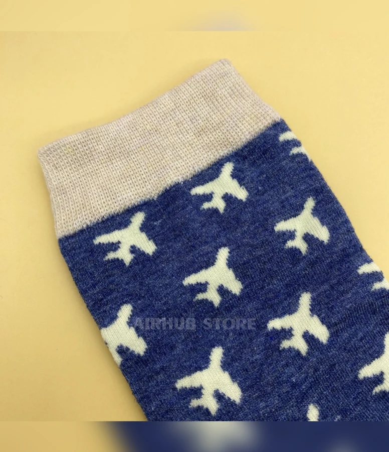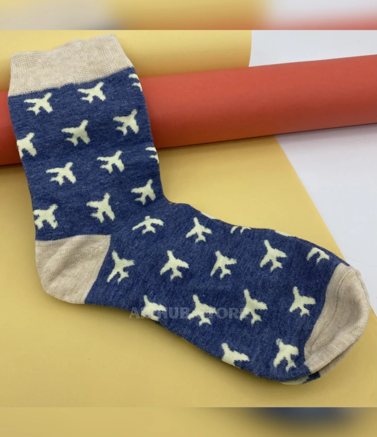 Beige socks with airplanes are a stylish and comfortable accessory for aviation fans. Made of soft and comfortable material, they are ideal for everyday wear, traveling or as a gift for a pilot or airplane fan.
