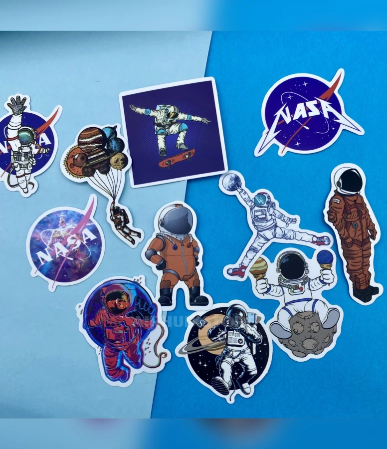 Immerse yourself in the unique world of space with the NASA sticker pack. Each sticker is a window into space where you can see planets and astronauts. This sticker pack offers an unrivalled opportunity to immerse yourself in the world of NASA and its great achievements.