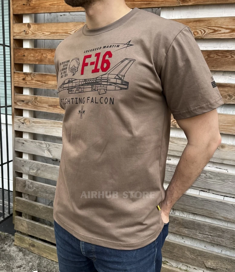 The “F-16 Fighting Falcon” T-shirt is the perfect choice for those who are fond of aviation and want to emphasize their passion for the sky. The design is inspired by the legendary F-16 Fighting Falcon fighter jet, which symbolizes power, speed and maneuverability. The image of the aircraft on the T-shirt adds to its uniqueness and will be a great addition to the wardrobe of any aviation enthusiast.