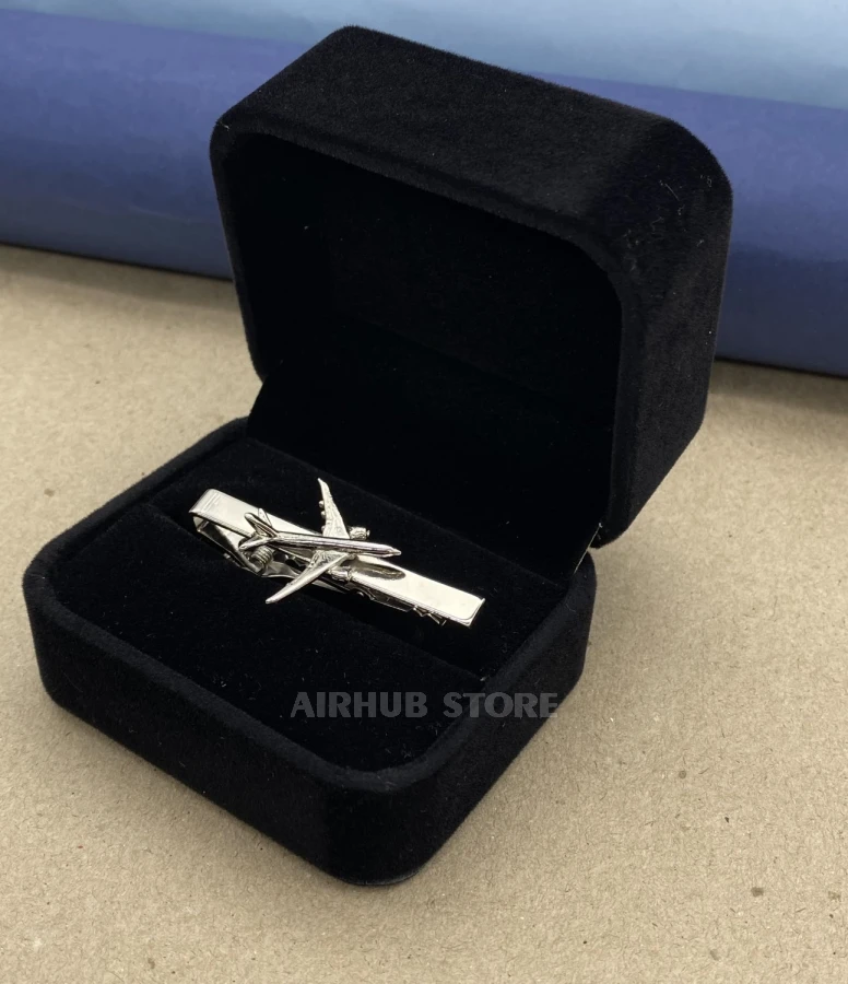 The Boeing B787 tie clip is a stylish and elegant accessory that will add a touch of aviation charm to your look. Made of high-quality metal, it is reliable and durable.