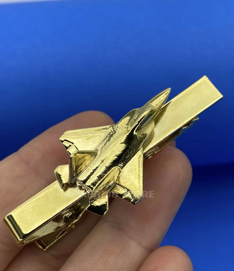 The clip holds the tie securely without damaging the fabric and is suitable for both everyday suits and pilot uniforms. Its design is a subtle balance between technicality and elegance. The silhouette of the F-22 looks dynamic and instantly recognizable, and the minimalist shape of the clip allows it to be worn in both business and festive occasions.