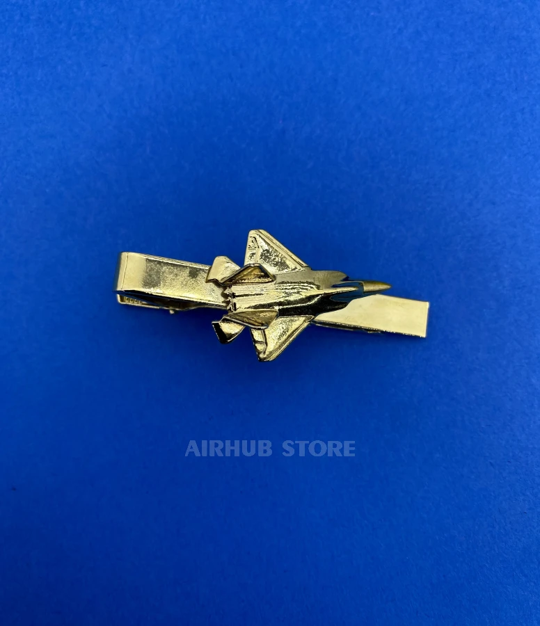 This metal tie clip in the shape of an F-22 Raptor fighter jet is an elegant symbol of aviation power and style. Inspired by the legendary fifth-generation American aircraft, this accessory conveys the spirit of high technology and speed associated with aviation.