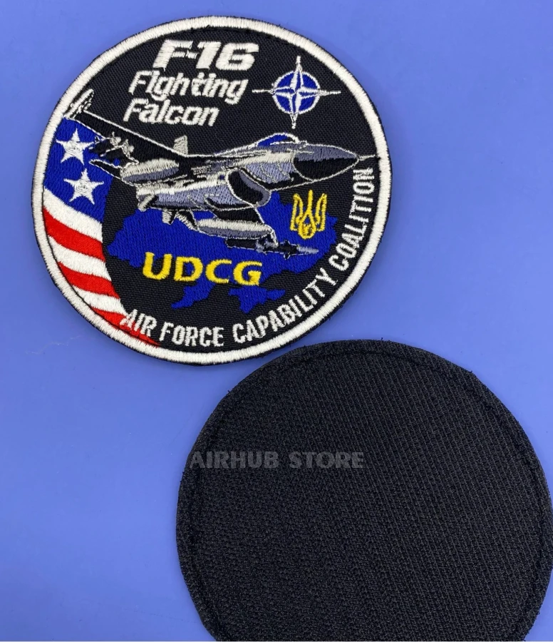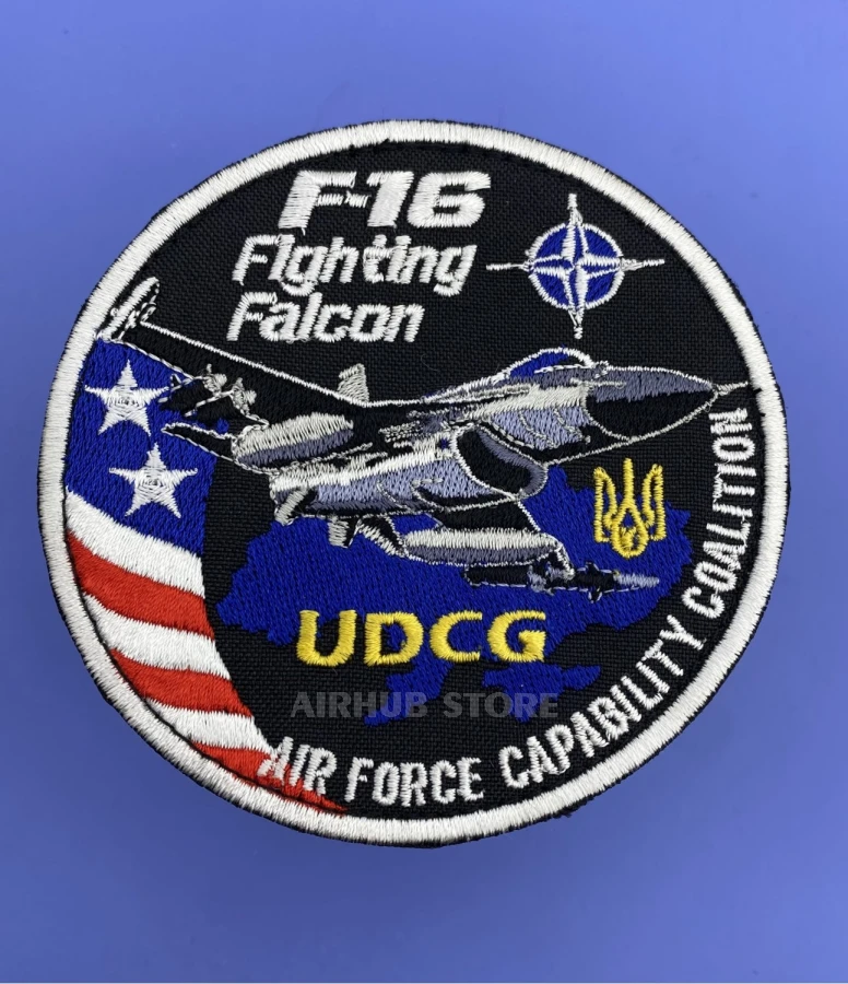 The patch depicts the legendary F-16 fighter jet. The UDCG is an alliance of 57 countries (32 NATO member states and 25 other countries) and the European Union that supports Ukraine's defense capabilities by sending military equipment (including F-16s) in response to the Russian invasion of 2022. We are grateful to USA for approving the transfer of F-16s to Ukraine!