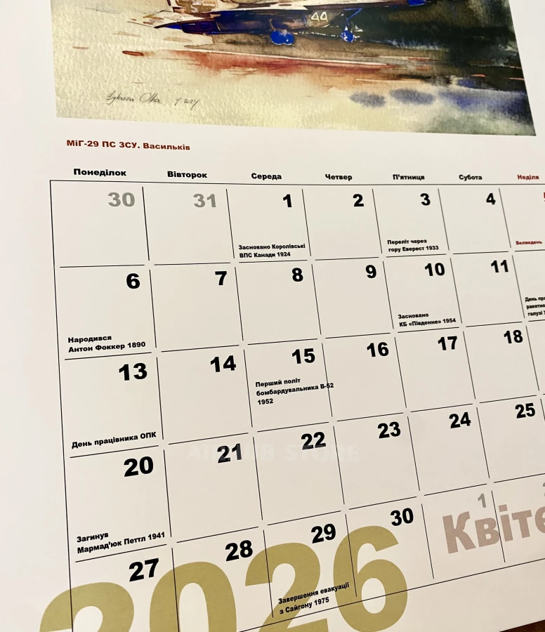 You can purchase the Aircraft Calendar on our website or in our store at 50b Khreshchatyk Street, Kyiv. We also deliver throughout Ukraine and worldwide.