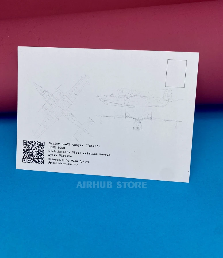 Watercolor postcards with airplanes Aviation Museum (Be-12 Mail , Cardboard)