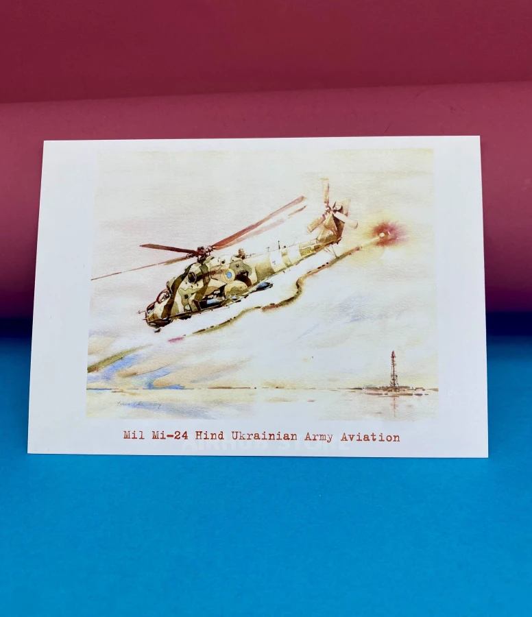 Watercolor postcards Ukrainian Air Force (MI-24 HIND , Cardboard)