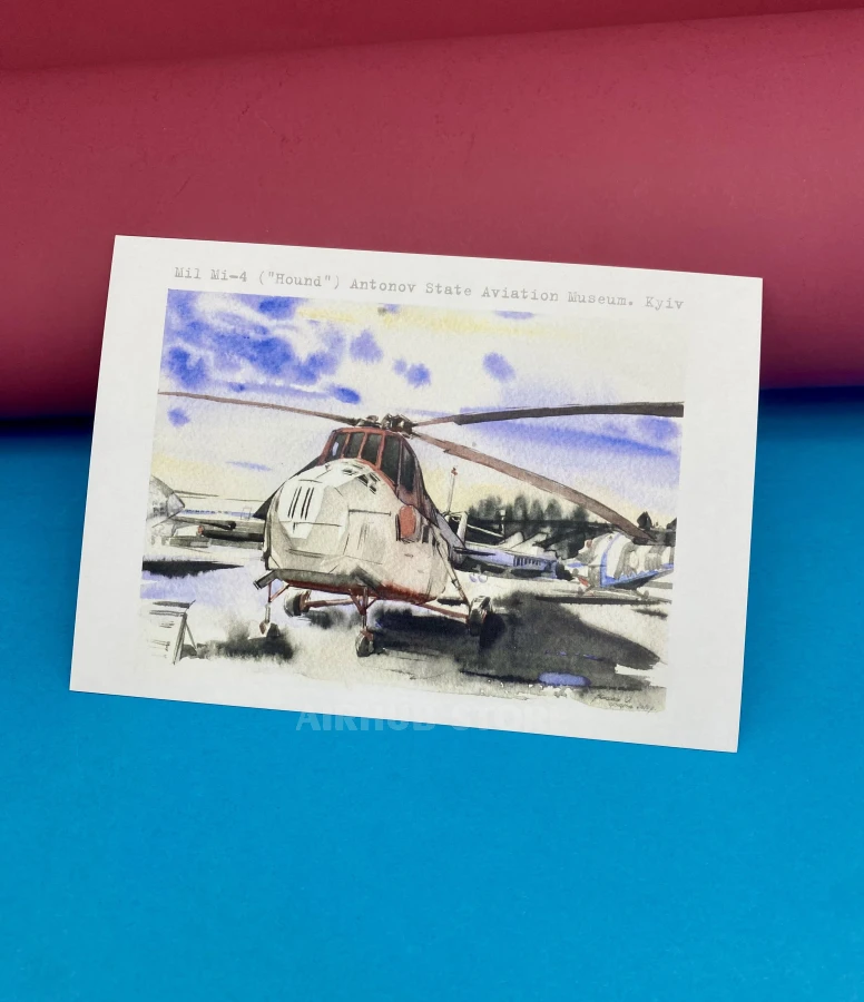 Watercolor postcards with airplanes Aviation Museum (MI-4 Hound , Cardboard)