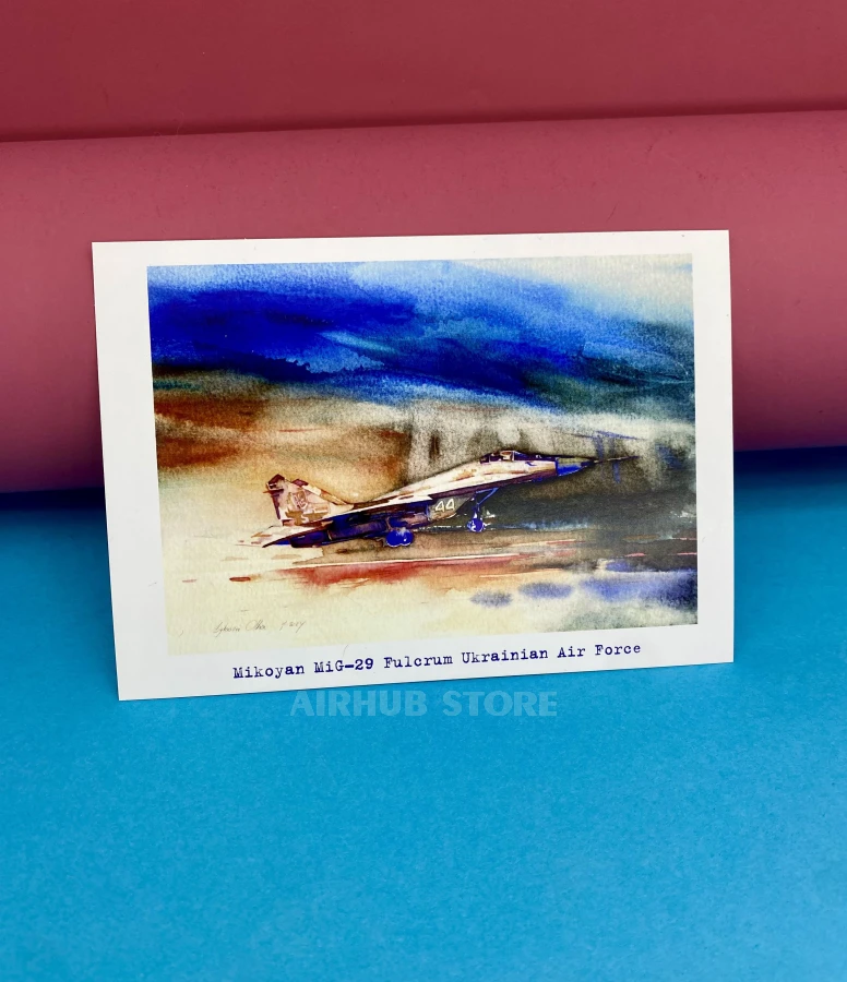 Watercolor postcards Ukrainian Air Force (MiG-29 Fulcrum , Cardboard)