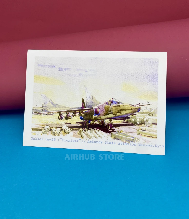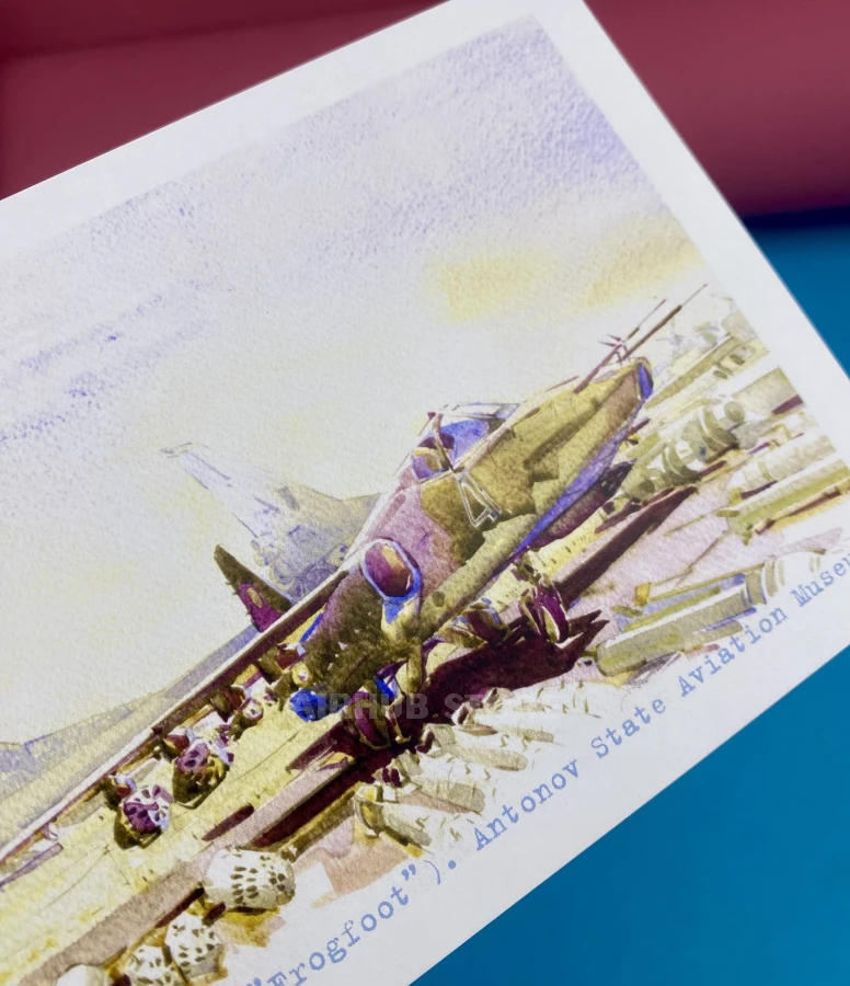 Watercolor postcards with airplanes Aviation Museum (Su-25 Frogfoot , Cardboard)