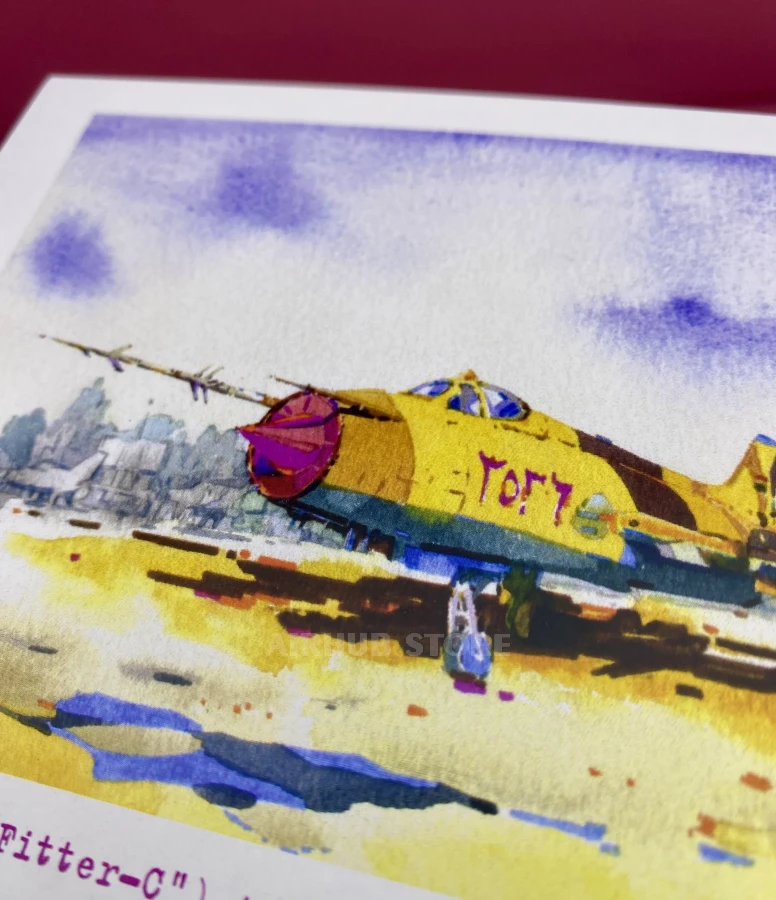 Watercolor postcards with airplanes Aviation Museum (Su-20 Fitter , Cardboard)