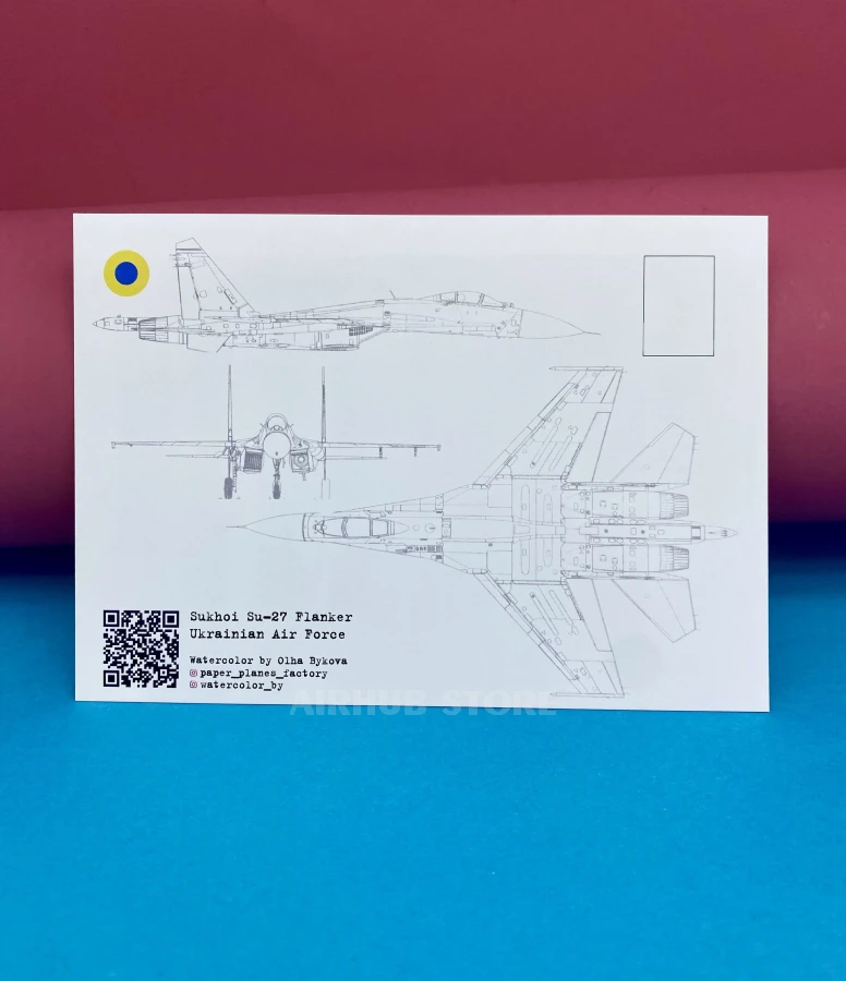 Watercolor postcards Ukrainian Air Force (Su-27 Flanker , Cardboard)