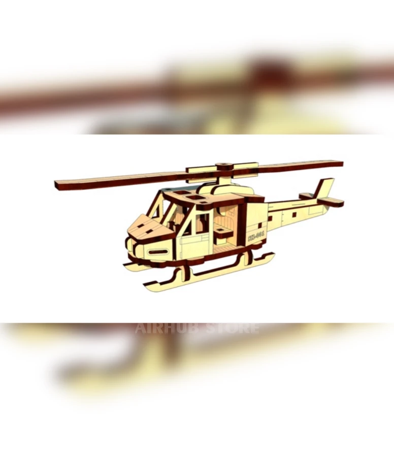 The wooden model is easy to paint with acrylic paints. This allows you to create your own helicopter design, experiment with colors, and make each model unique. The assembled helicopter can be used as a toy, a decorative element in a child's room, or part of a small collection. The construction set combines play, learning, and creativity, making it a great choice for children and for spending time with parents.