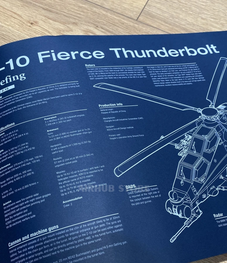 The Z-10 Fierce Thunderbolt is an attack helicopter developed by the People's Republic of China. It is designed primarily for anti-tank missions, but also has secondary capabilities for air-to-air operations