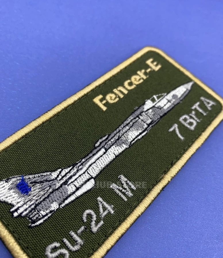 Эта нашивка посвящена легендарному украинскому фронтовому бомбардировщику Су-24М, который в классификации НАТО имеет обозначение Fencer-E. Самолет с изменяемой стреловидностью крыла известен своей универсальностью - он способен выполнять высокоточные удары днем и ночью, при любых погодных условиях.