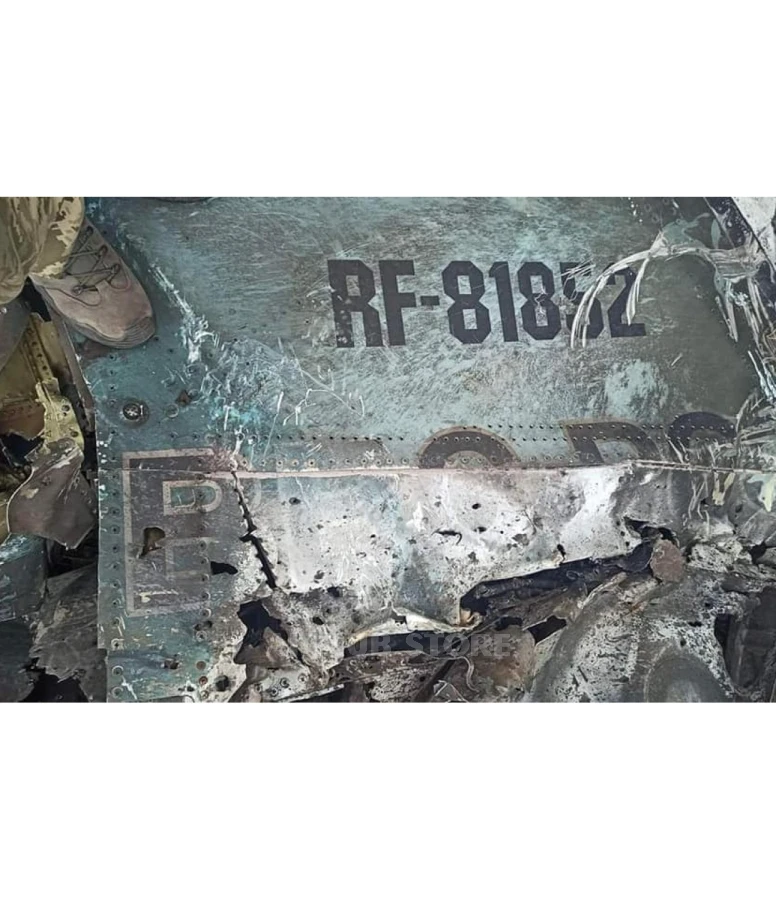 Брелок из настоящей обшивки самолета, самолет порезан на 286шт. брелоков, каждый имеет свой уникальный номер. Брелоки вырезаны из фюзеляжа Ми-24П, военный номер 32 Red, зарегистрированный как RF-95286. Он был сбит возле села Козаровичи Киевской области Украины 5 марта 2022 года.
