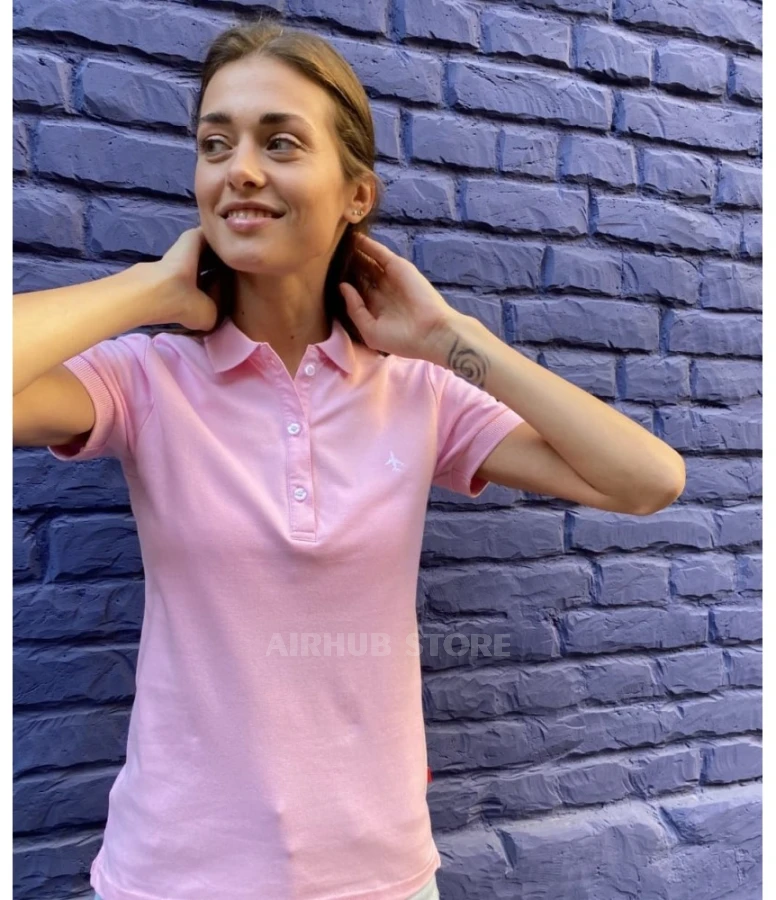 Розовое поло с вышитым самолетиком