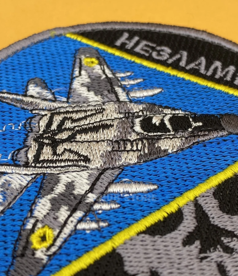 На нашивке изображен легендарный самолет Мрия АН-225. Это самый большой и самый тяжелый самолет в мире. Он был создан в Украине компанией Антонов для перевозки грузов и выполнения сложных транспортных задач.
