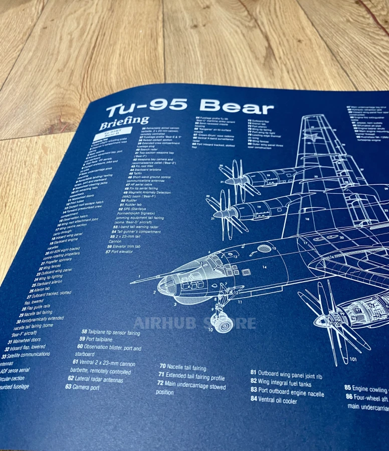 Авиационный постер Ту-95 станет удачным элементом декора для кабинета, офиса, учебного класса или частной авиационной коллекции. Он будет интересен пилотам, авиационным инженерам, военным, студентам технических специальностей и всем, кто интересуется историей и конструкцией военных самолетов.