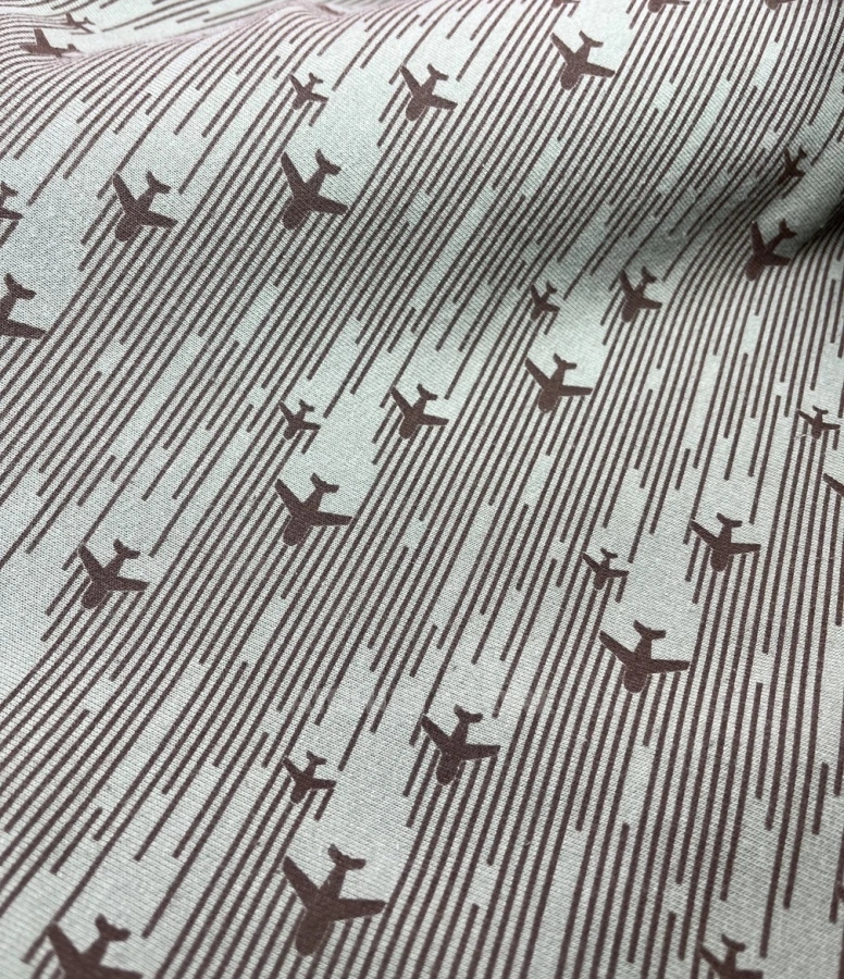 Головний акцент зроблено на мінімалістичні, але виразні елементи – вишиті силуети літаків, які символізують свободу польоту та динаміку руху. Завдяки чорній вишивці на чорній тканині створюється ефект глибини та стриманої елегантності, що підкреслює преміальність виробу. Додаткові деталі, такі як акуратні червоні та зелені акценти, відтворюють справжні навігаційні вогні літаків, додаючи світшоту особливого шарму та автентичності.
