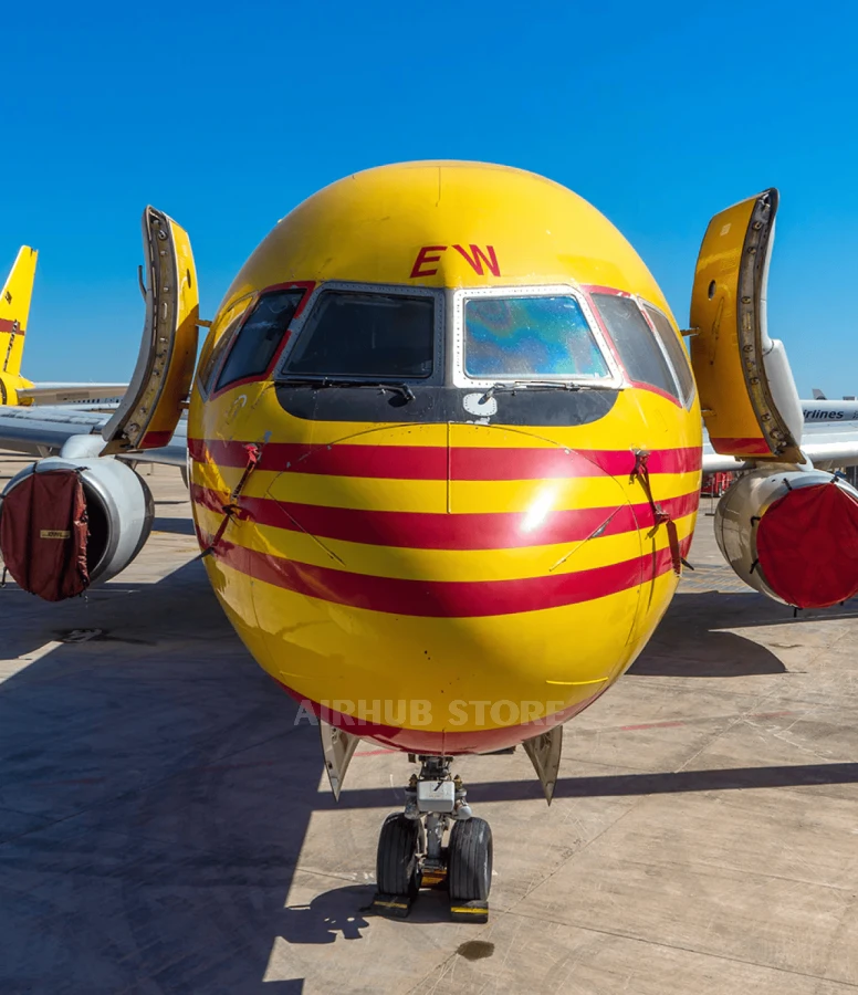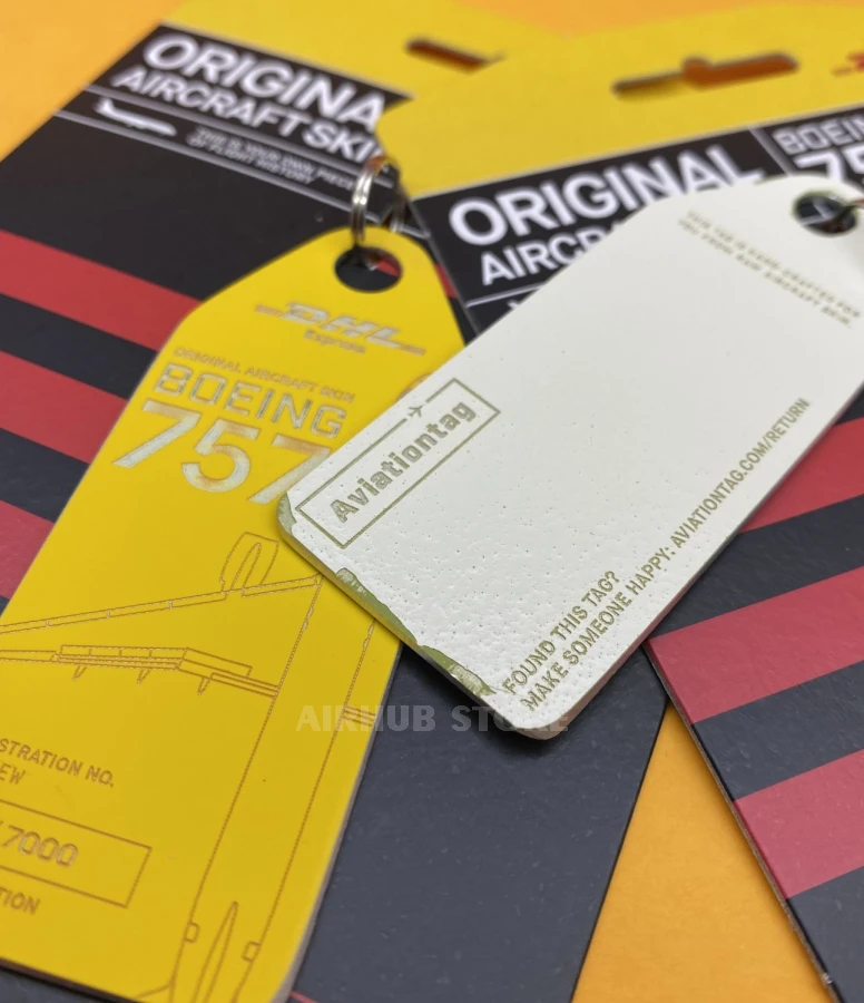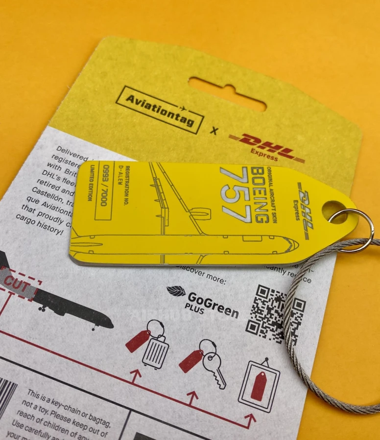 Побудований у 1988 році, D-ALEW спочатку служив пасажирським літаком для British Airways, а потім приєднався до DHL Express у 2003 році. Переобладнаний у вантажний літак, він перевозив вантажі по всьому світу до свого виходу на пенсію у 2017 році. Після виведення з експлуатації у 2018 році його було розібрано разом у Кастельйоні. Літак був переданий компанії Aviationtag для порізки та виготовлення цих унікальних брелоків!