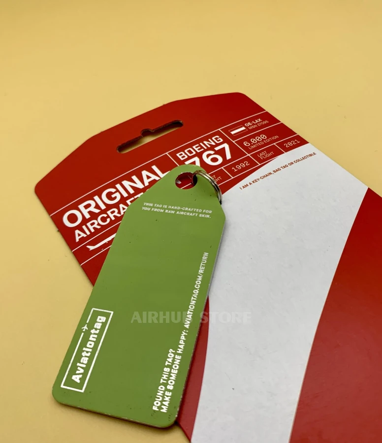 Цей брелок був виготовлений з обшивки літака Boeing 767 Austrian Airlines OE-LAX. Усі брелоки мають унікальний порядковий номер.