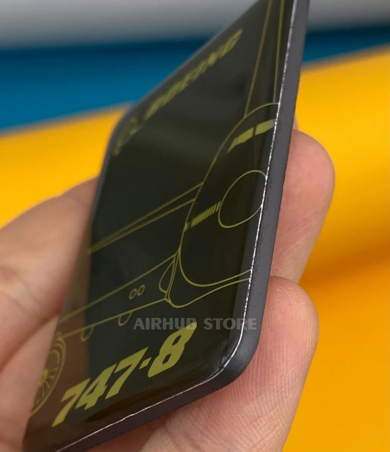 Дизайн побудований на чистих лініях і фірмовій айдентиці Boeing, без зайвих деталей. Чорний фон у поєднанні з контрастною графікою виглядає лаконічно та сучасно, добре вписується як у домашній інтер’єр, так і в робоче середовище.