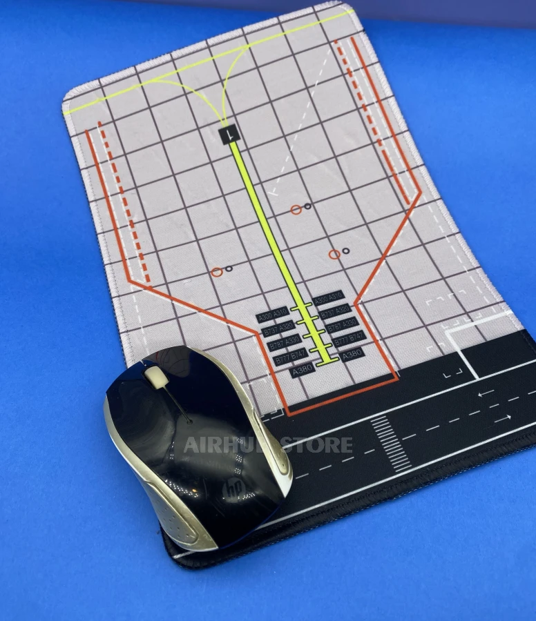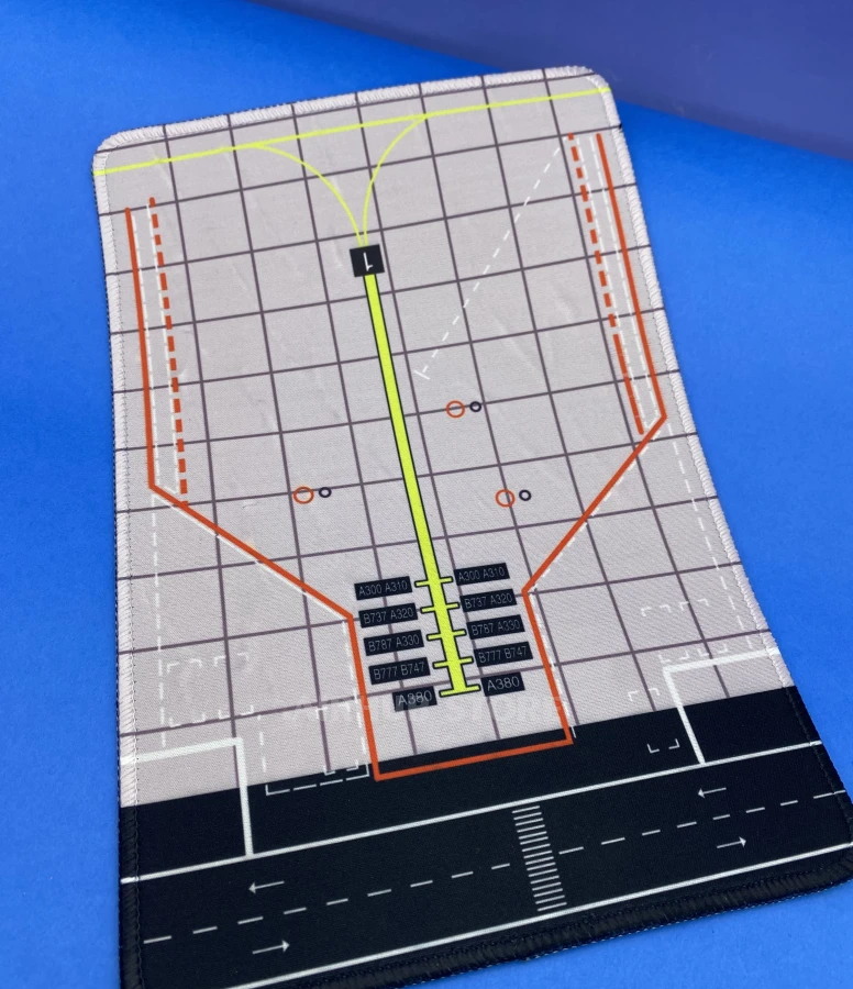 Великий килимок із деталізованою схемою перону: руліжні доріжки, стоянки та розмітка як у реальному аеропорту. Зручно працювати з мишкою й розмістити клавіатуру.