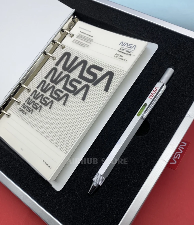 Блокнот NASA - компактний записник із металевою обкладинкою та логотипом NASA. Ідеальний для нотаток, можна замінювати сторінки. Стильний дизайн, зручний формат, неймовірна практичність.